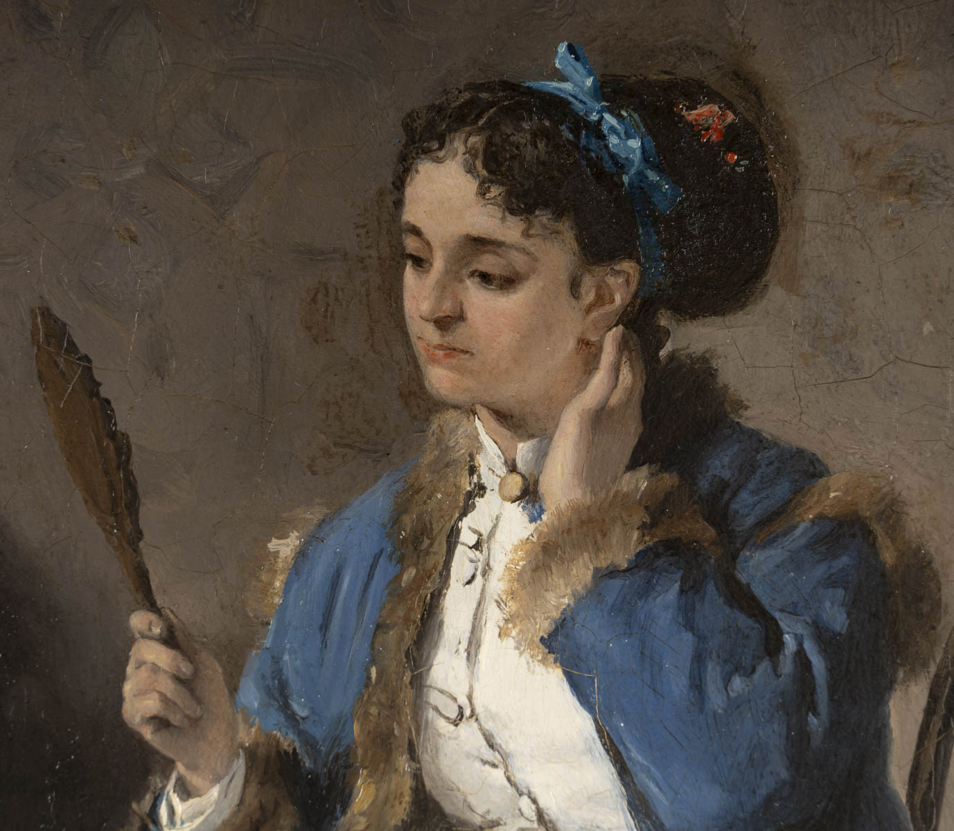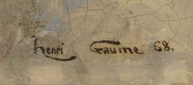 Active in Paris, Henri René Gaume appeared at the Salon de Paris from 1866 to 1870 with genre scenes. He loved to depict elegant women in their homes, with a sense of detail and mise-en-scène.