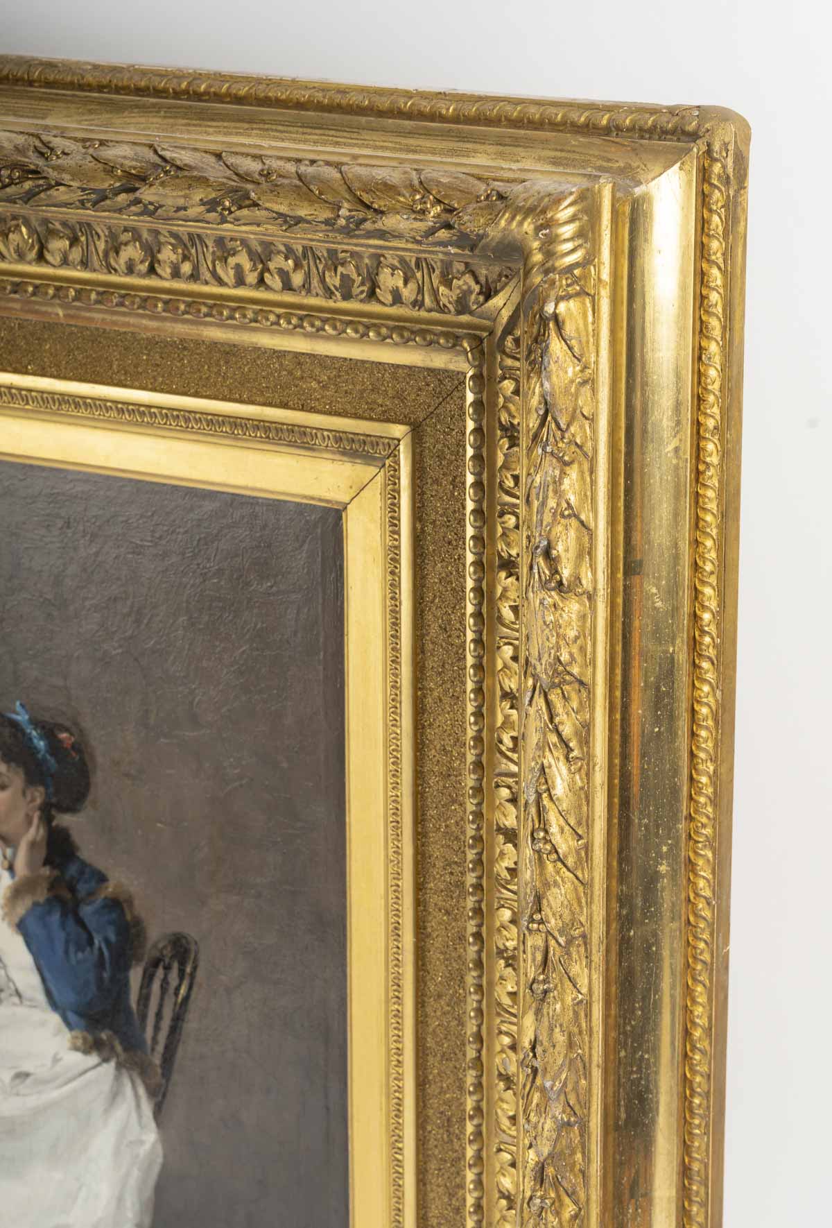 19th-century barbizon-style frame, gilded with gold leaf.