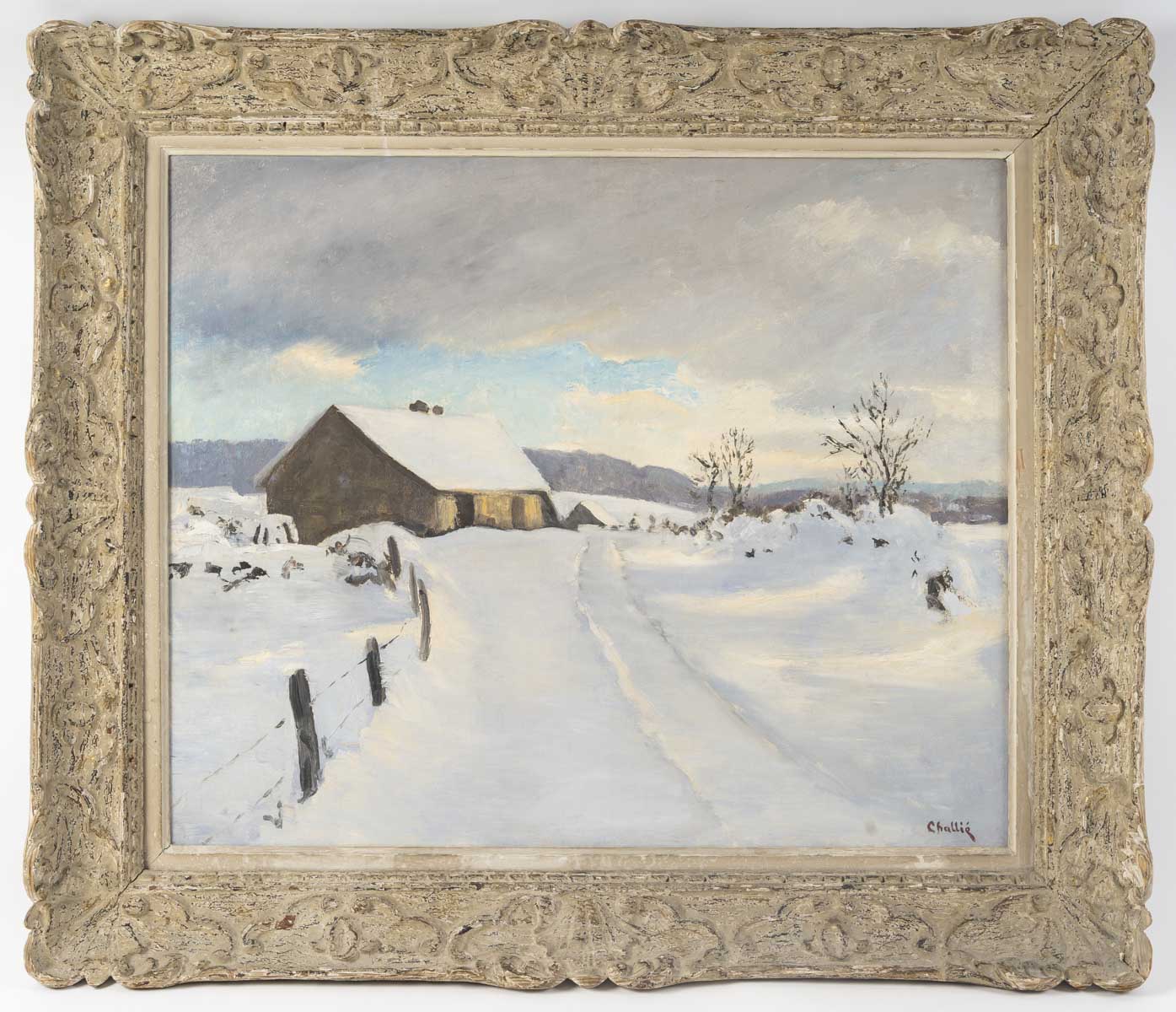 Un paysage de neige du Jura par le peintre Jean Laurent Buffet Challié. Une peinture post-impressionniste, à la touche moderne, légère et onctueuse.